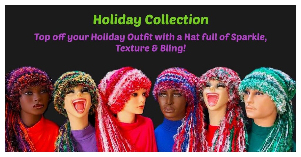 Christmas, Cinco de Mayo Custom Handmade Hat for Parties, Parades, Holiday Events – Crocheted with Sparkle, Bling, Fringe & Fur in Red/White/Green.